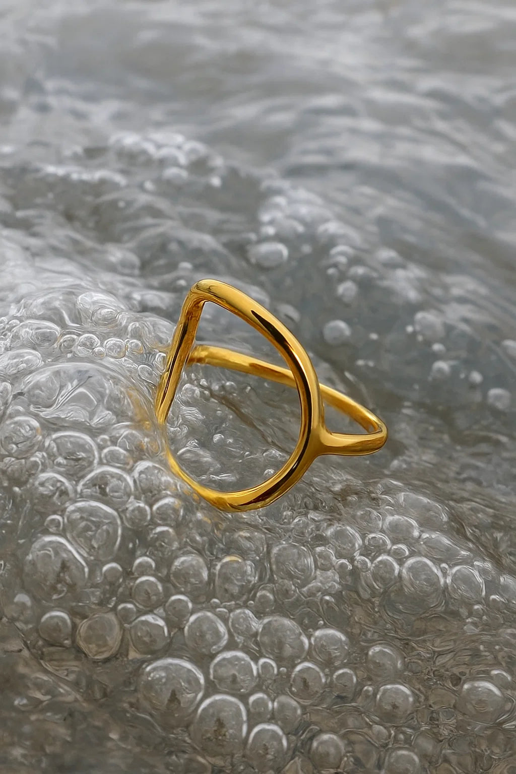 Fabricado en acero inoxidable de alta calidad y recubierto con tecnología PVD en tono dorado, este anillo es resistente al agua, hipoalergénico y no pierde su color ni brillo.