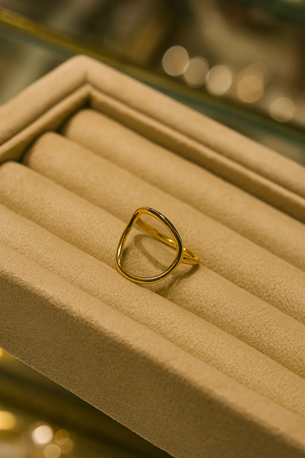 El Anillo Cora equilibra la sencillez y la elegancia con un diseño moderno y llamativo. Su gran círculo dorado lo convierte en una pieza central que atrae todas las miradas, sin perder la sutileza de un estilo minimalista.