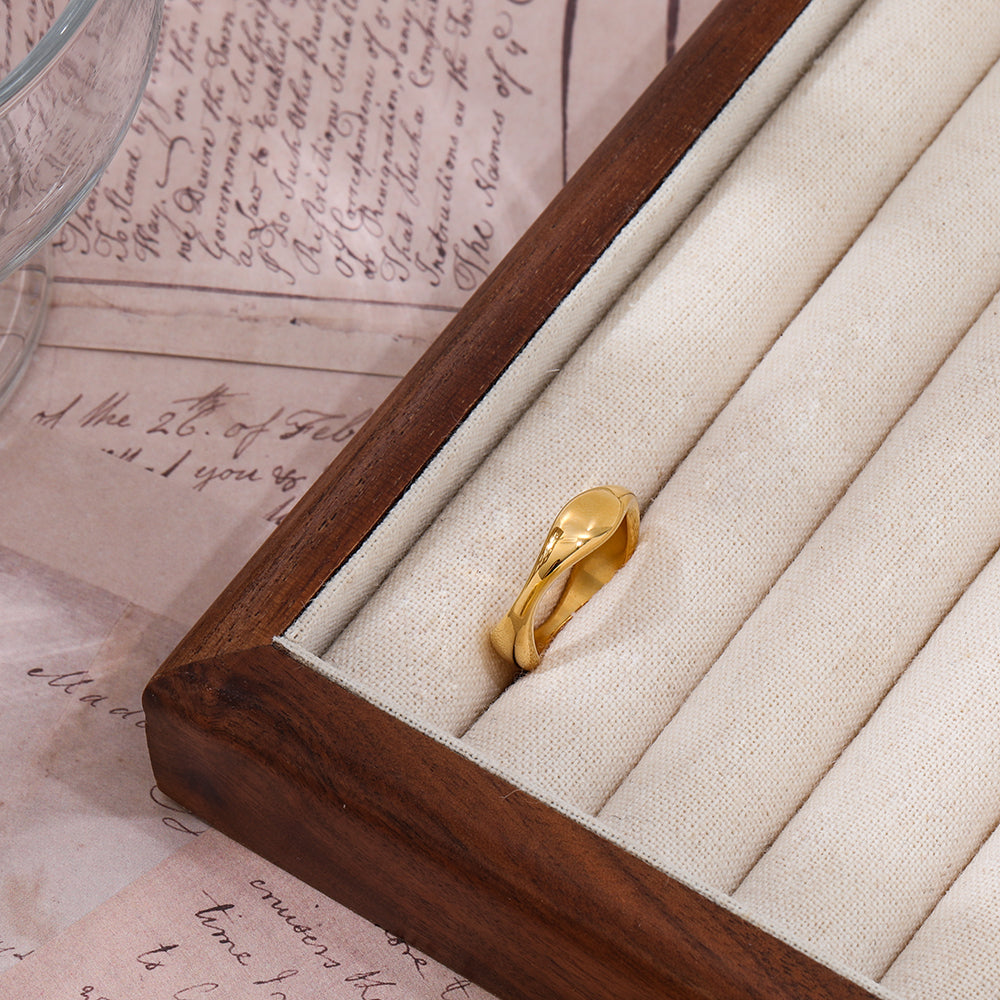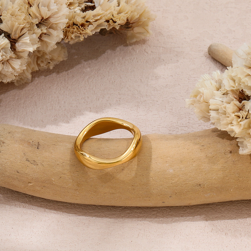 El Anillo Fenicia destaca por su silueta orgánica y elegante, inspirada en líneas suaves y fluidas que envuelven el dedo con un toque moderno y sofisticado. Su acabado brillante resalta su diseño único, convirtiéndolo en una pieza versátil ideal para looks minimalistas o combinaciones más audaces. Perfecto para quienes buscan un accesorio contemporáneo que no pase desapercibido. Fabricado en acero inoxidable 316L con recubrimiento PVD dorado, este anillo es hipoalergénico, resistente al agua y altamente duradero, manteniendo su brillo impecable con el tiempo.
