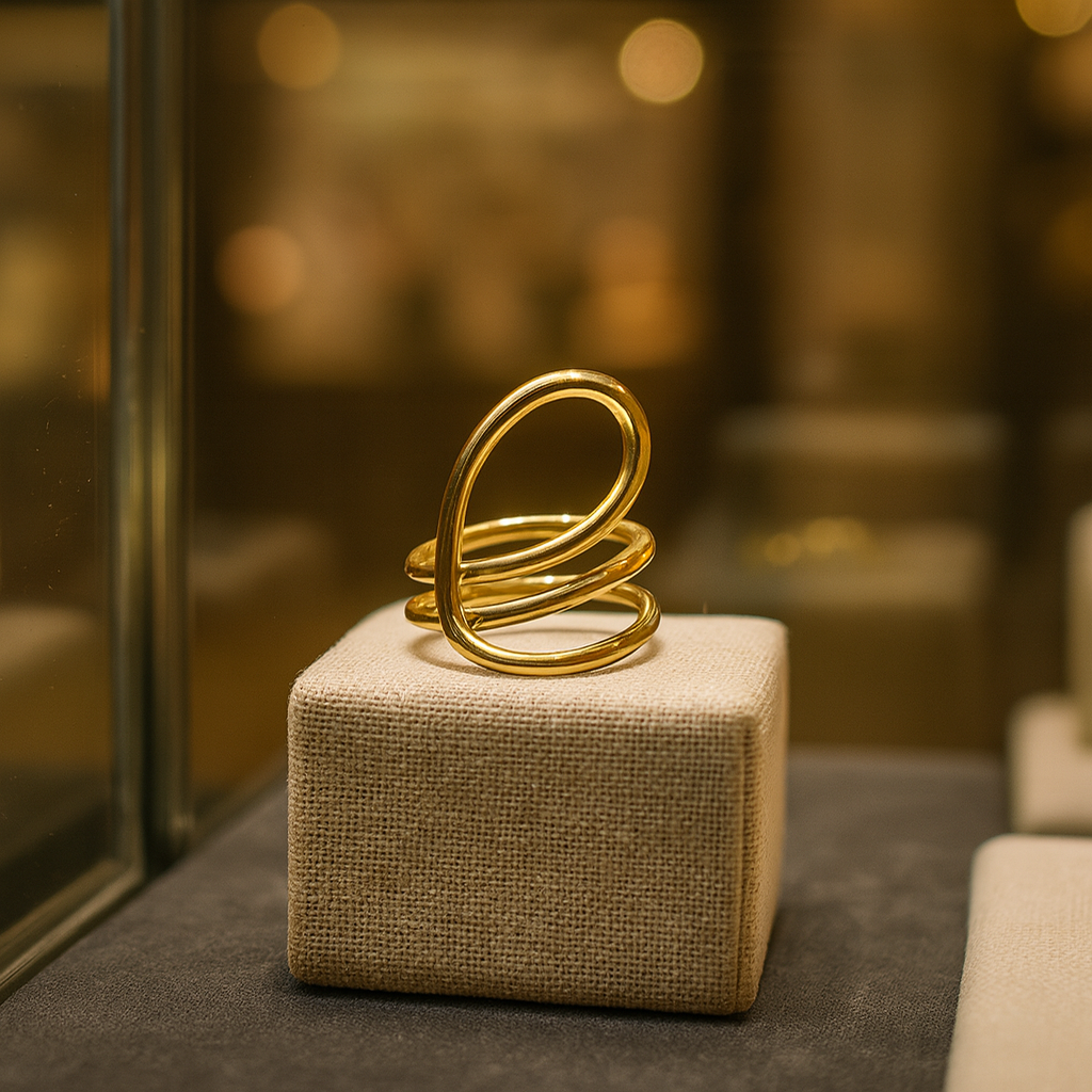El Anillo Melusina destaca por su diseño moderno y envolvente, compuesto por tres aros entrelazados que crean una silueta escultural y elegante. Su forma abierta y ligera lo convierte en una pieza versátil que aporta un toque contemporáneo a cualquier look, ya sea casual o sofisticado. Ideal para mujeres que buscan accesorios únicos con personalidad. Fabricado en acero inoxidable 316L con recubrimiento PVD dorado, este anillo es hipoalergénico, resistente al agua y altamente duradero, manteniendo su brillo impecable con el tiempo.