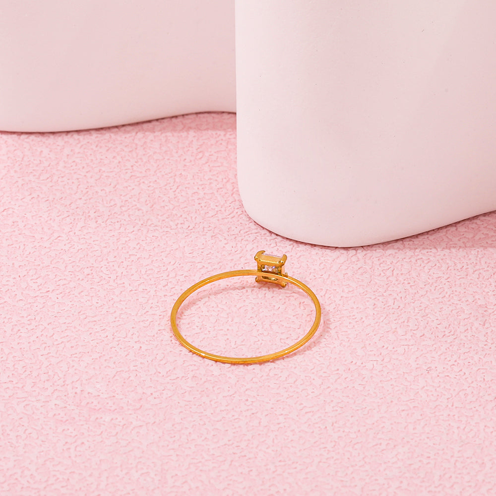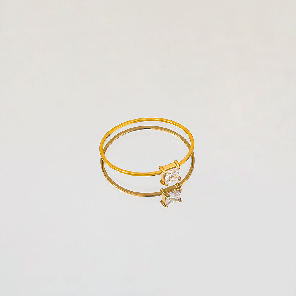 El Anillo Ondina es una joya delicada y minimalista, perfecta para quienes buscan un toque sutil de brillo en su look diario. Su diseño fino en acabado dorado se realza con una piedra central de corte cuadrado que aporta elegancia y luminosidad sin perder la sencillez.