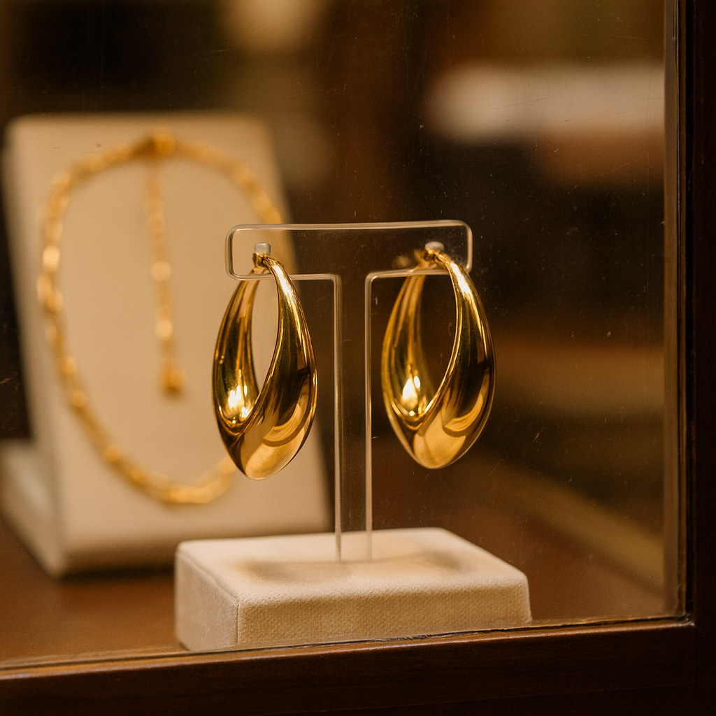 Los aretes Atenea destacan por su diseño de aro grueso con acabado brillante, logrando el equilibrio perfecto entre sofisticación y sencillez. Una pieza versátil y atemporal que aporta carácter y estilo a cualquier conjunto, ideal para acompañarte en el día a día o en ocasiones especiales.