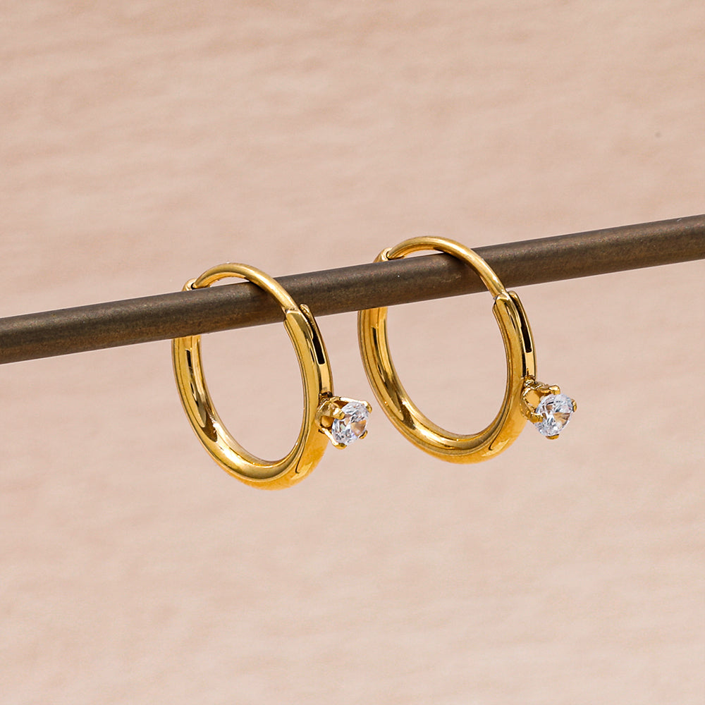 Los Aretes Fiorella destacan por su diseño en aro fino adornado con una zirconia brillante que aporta un toque de luminosidad y sofisticación. Su estilo delicado y elegante los convierte en la elección perfecta para mujeres que buscan una joya versátil, ideal tanto para el uso diario como para ocasiones especiales. Elaborados en acero inoxidable 316L con recubrimiento PVD dorado, estos aretes son hipoalergénicos, resistentes al agua y de alta durabilidad, manteniendo su brillo impecable y garantizando comodidad en cada uso.