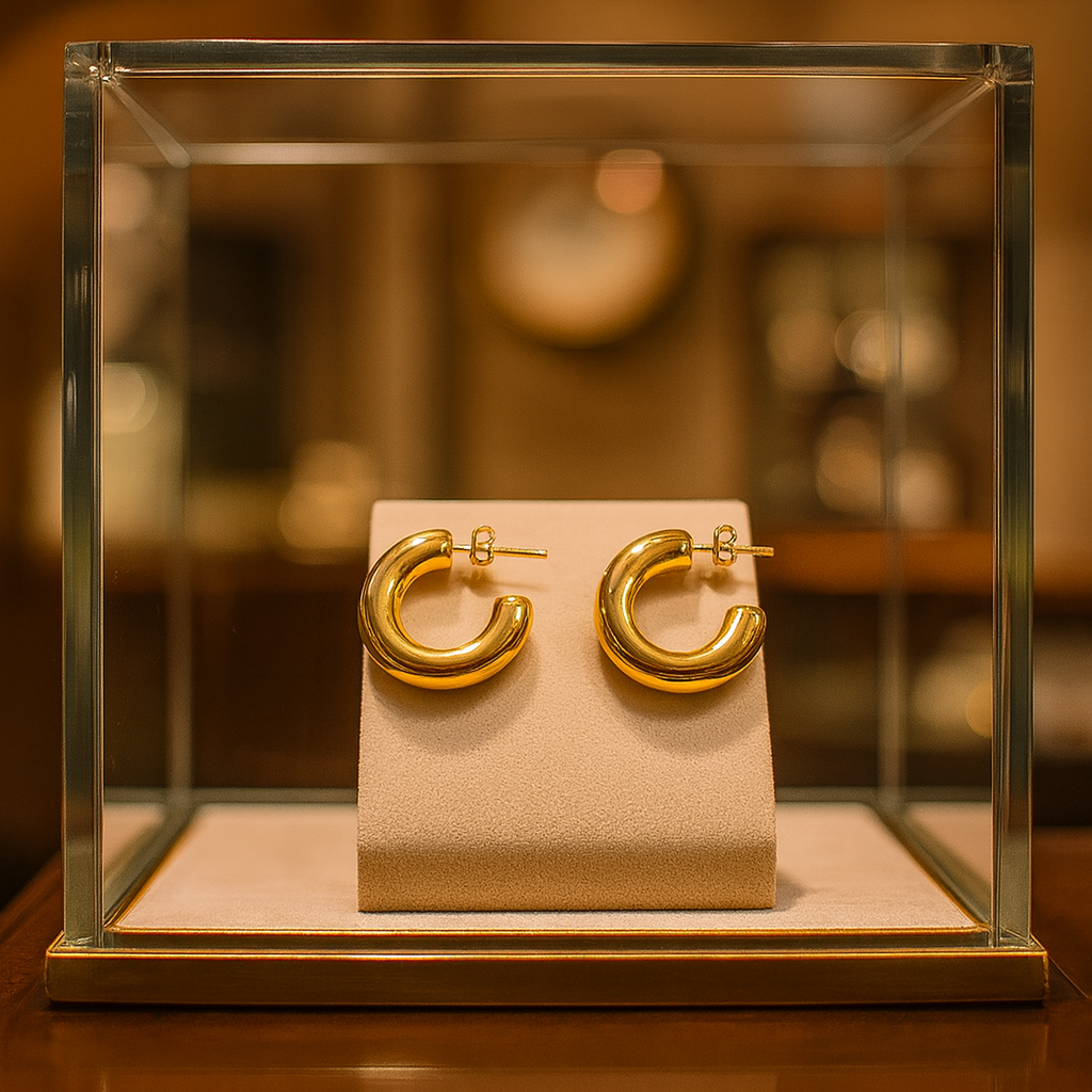 Los Aretes Gaia de CHULLA combinan fuerza y elegancia en una silueta moderna y audaz. Su diseño grueso y acabado dorado espejo los convierte en un clásico contemporáneo que realza tu estilo con sutileza y carácter. Fabricados en acero inoxidable, son resistentes al agua, hipoalergénicos y cuentan con 2 años de garantía, para acompañarte en cada momento sin perder su brillo ni su encanto.