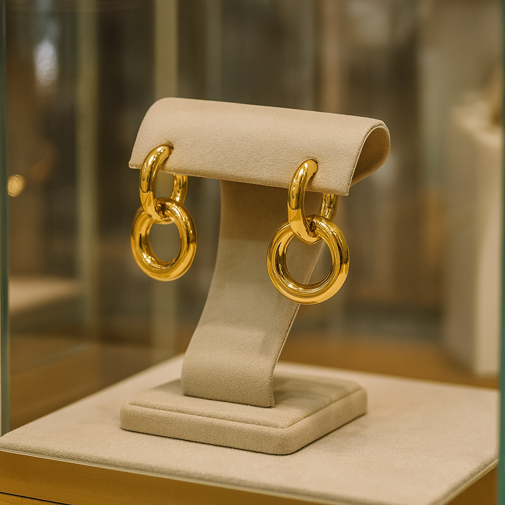 Los Aretes Leyla destacan por su diseño circular minimalista, que combina delicadeza y elegancia atemporal. Su estilo versátil los convierte en el complemento perfecto tanto para looks casuales como para ocasiones especiales, realzando el rostro con un toque moderno y sofisticado. Están fabricados en acero inoxidable 316L con recubrimiento PVD dorado, lo que garantiza un brillo impecable, resistencia al agua y una alta durabilidad. Además, son hipoalergénicos y cómodos para uso diario, ideales para mujeres que buscan piezas finas y resistentes que no pasen desapercibidas.