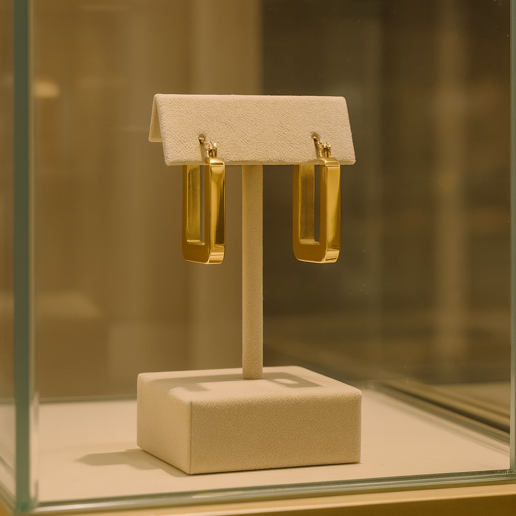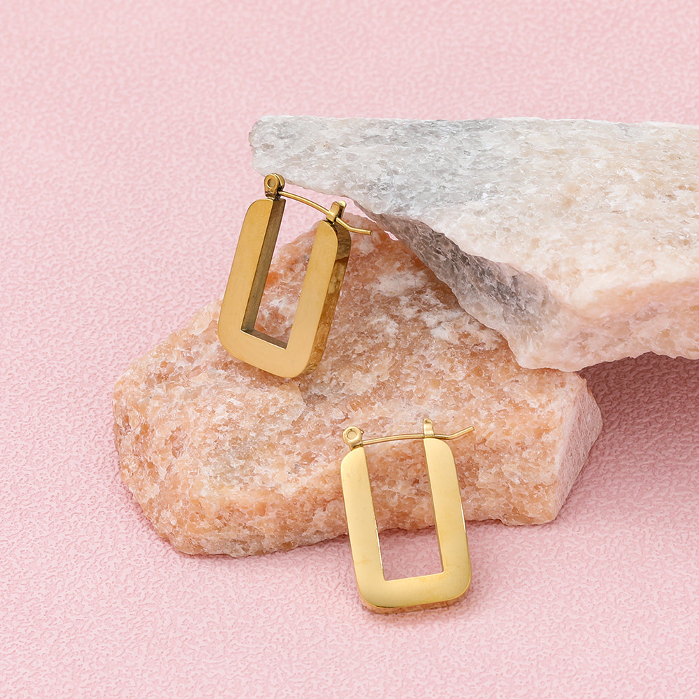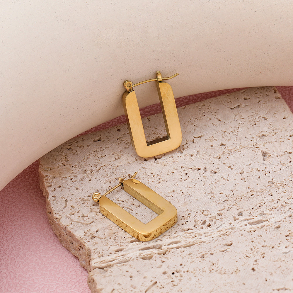 Los Aretes Milena destacan por su diseño geométrico rectangular que aporta un aire moderno y audaz, ideal para mujeres que buscan un accesorio con carácter y elegancia. Su acabado dorado brillante en líneas limpias los convierte en una joya versátil, perfecta tanto para un look de oficina como para un evento especial. Elaborados en acero inoxidable 316L con recubrimiento PVD dorado, estos aretes son hipoalergénicos, resistentes al agua y de alta durabilidad, ofreciendo comodidad y un brillo impecable que perdura con el tiempo.