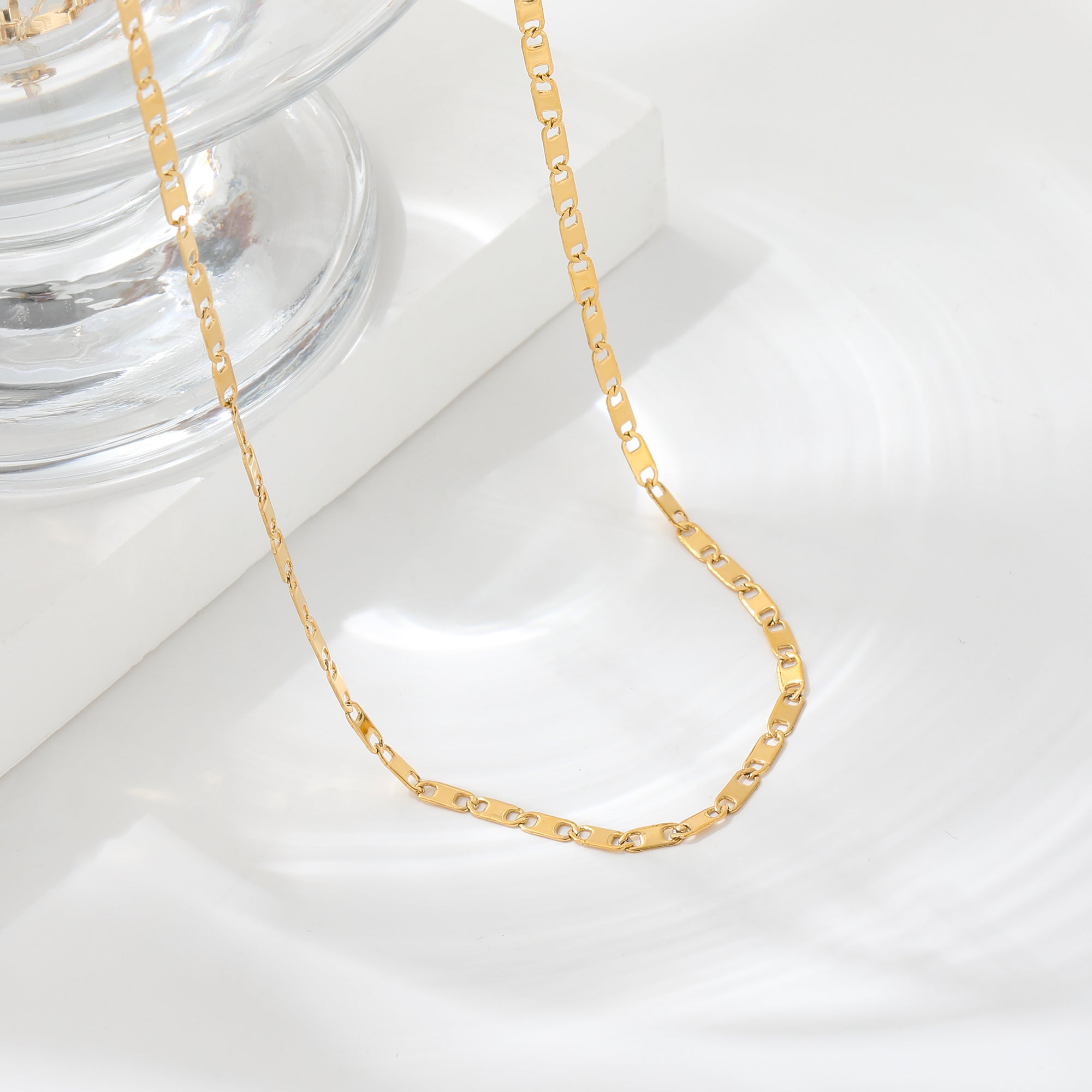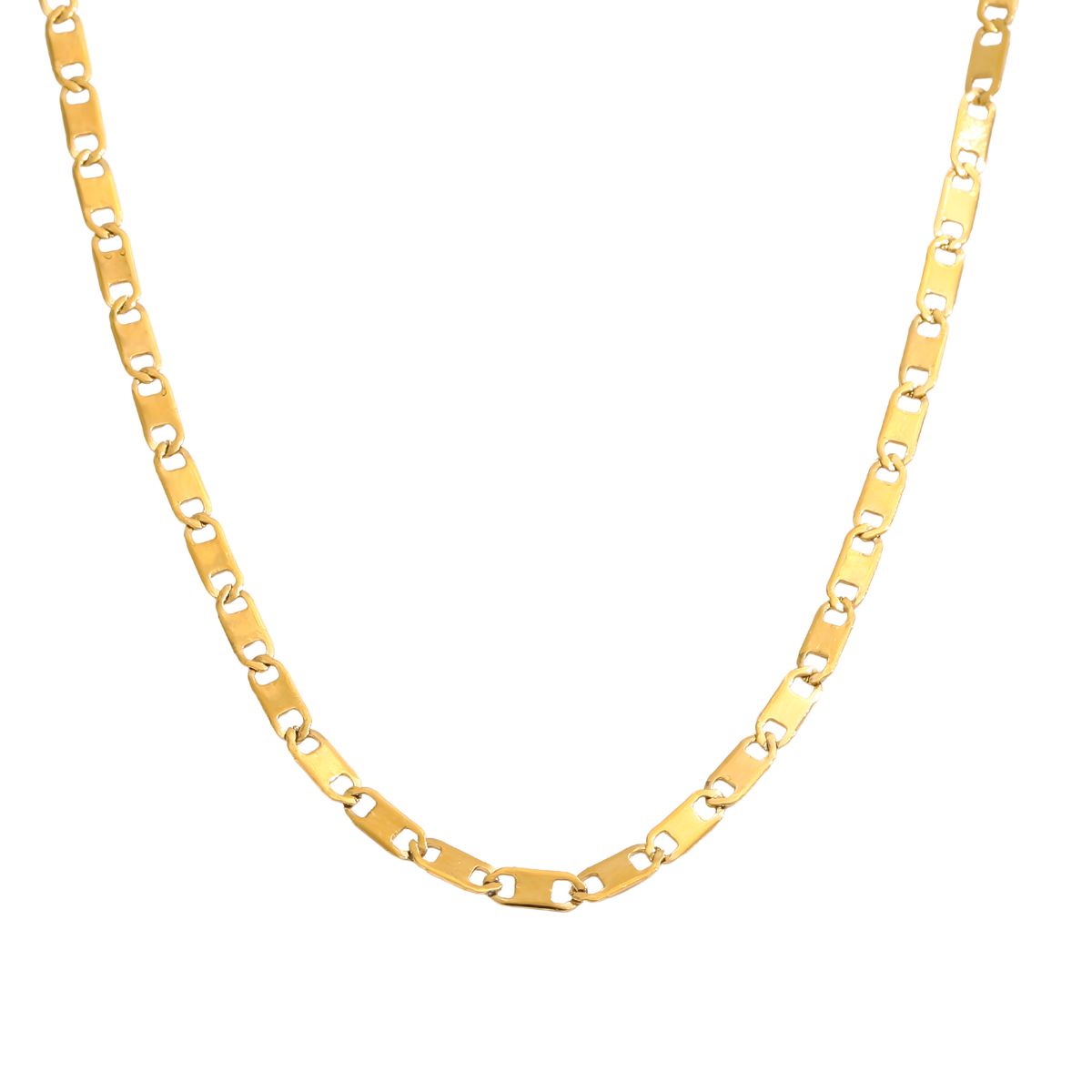 Fabricado en acero inoxidable 316L con baño en PVD dorado, este collar combina estilo y resistencia, siendo hipoalergénico y resistente al agua para acompañarte en tu día a día sin perder su brillo ni su color. Una pieza que se convertirá en un básico imprescindible dentro de tu colección de joyas.
