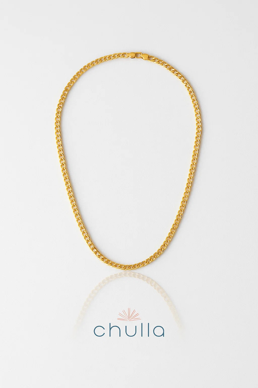 Fabricado en acero inoxidable de alta gama y recubierto con un baño de oro de 18K mediante tecnología PVD, este collar es impermeable, hipoalergénico y resistente al desgaste diario. Puedes usarlo en la ducha, al entrenar o durante el día sin preocuparte por su color o brillo.