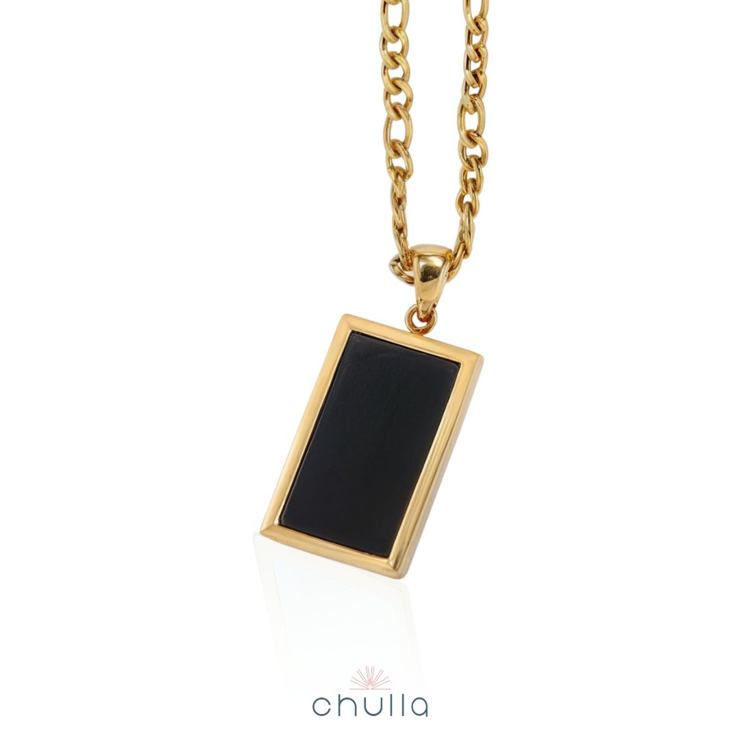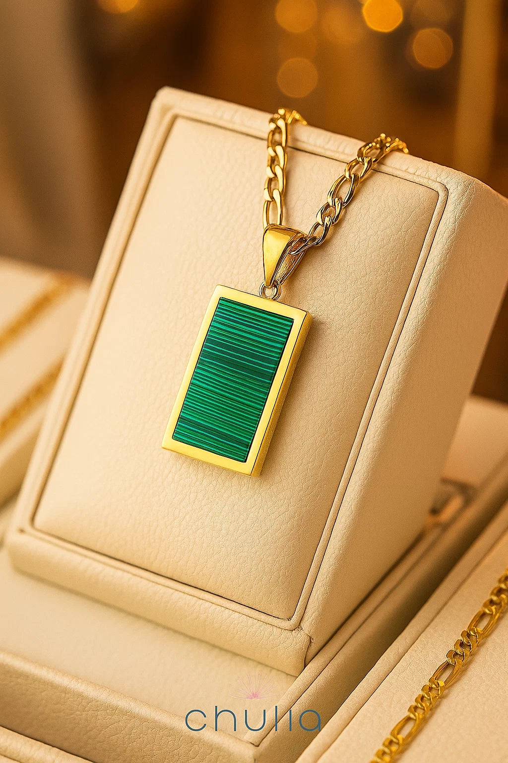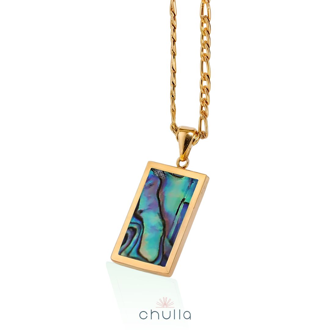 Este delicado collar presenta un dije rectangular con esmalte y detalles en concha, que aporta un aire único y sofisticado. Fabricado en acero inoxidable y con recubrimiento PVD en oro 18K, el collar Carmen destaca por su acabado impecable, resistente y duradero.