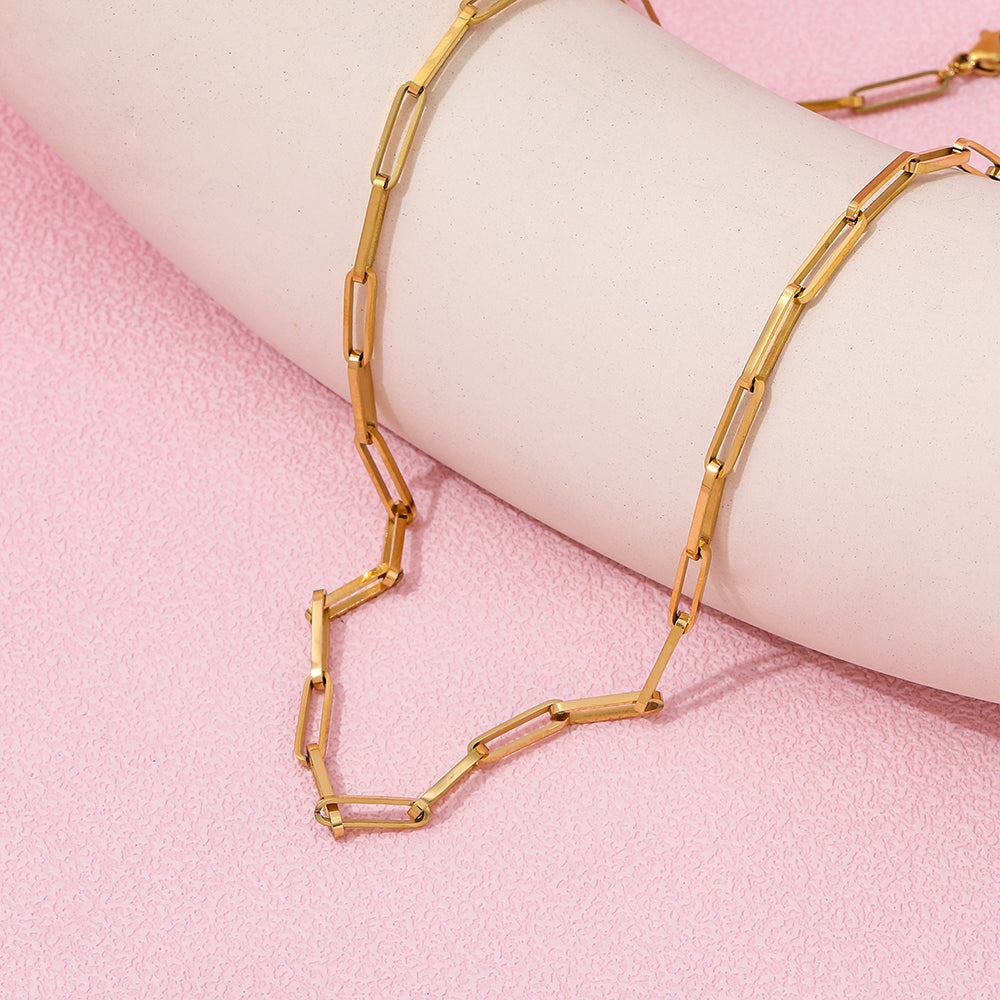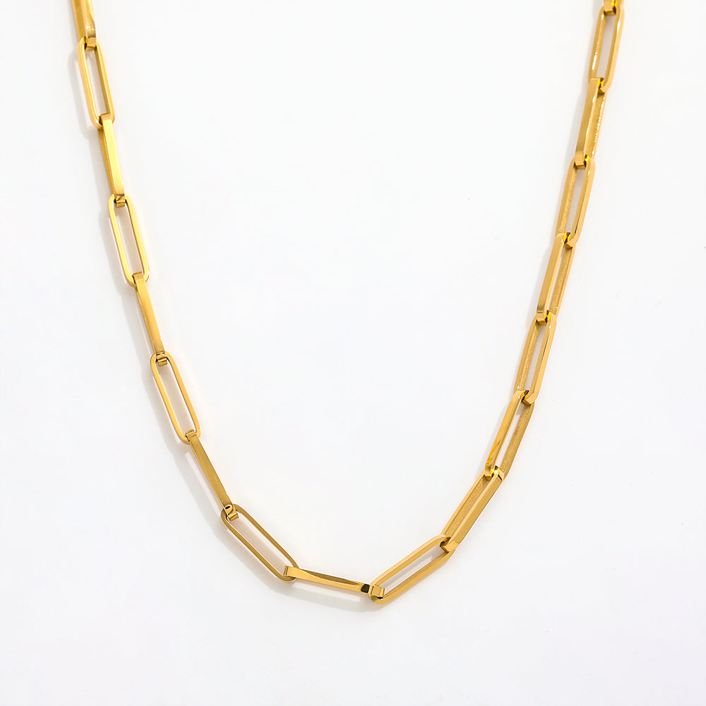 Fabricado en acero inoxidable 316L con baño en PVD dorado, este collar no solo resalta por su acabado brillante y moderno, sino también por su alta durabilidad. Es resistente al agua, hipoalergénico y pensado para acompañarte siempre, manteniendo su belleza intacta con el paso del tiempo.
