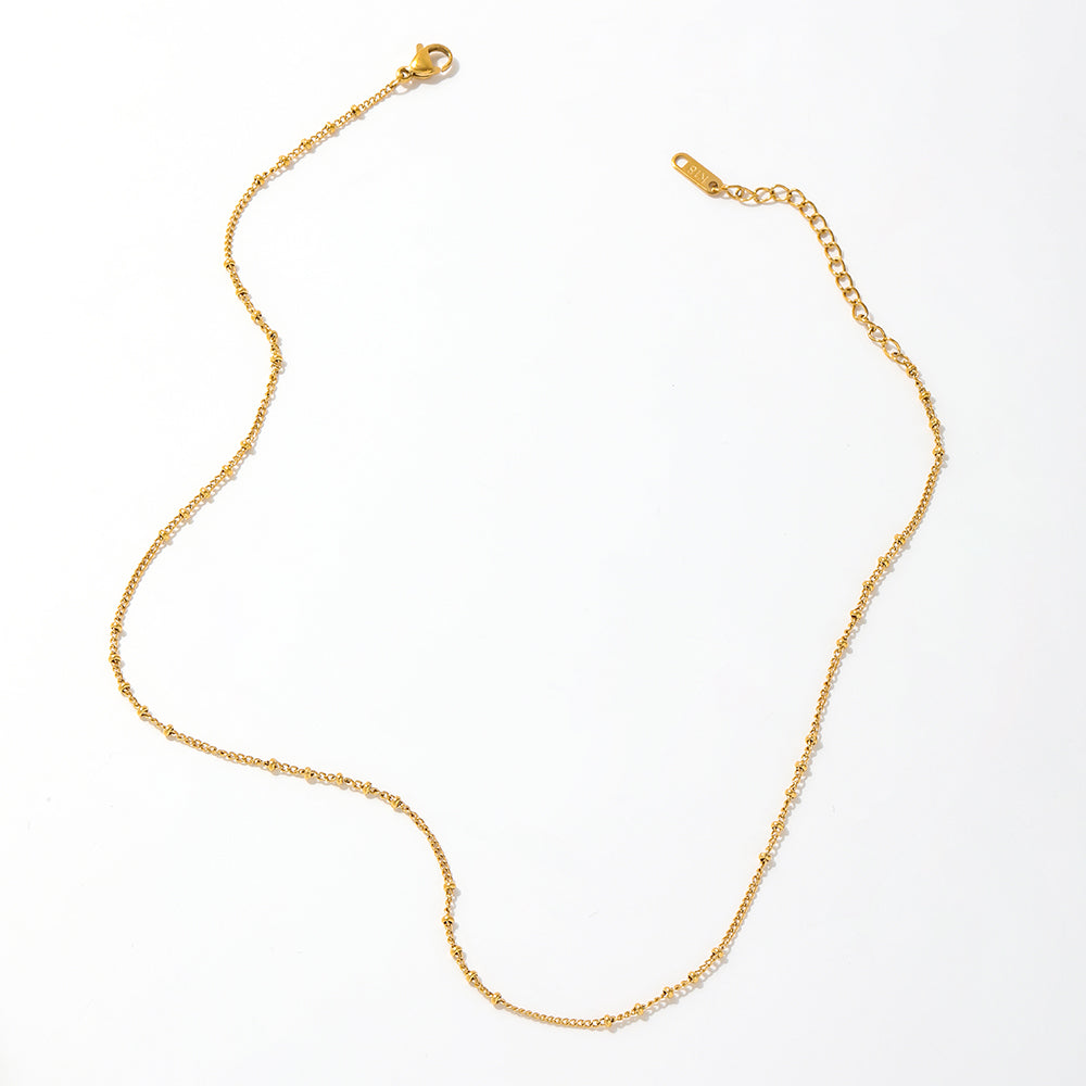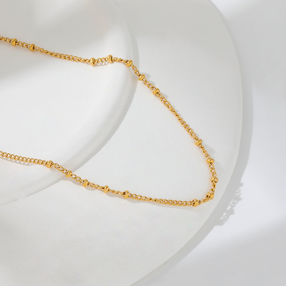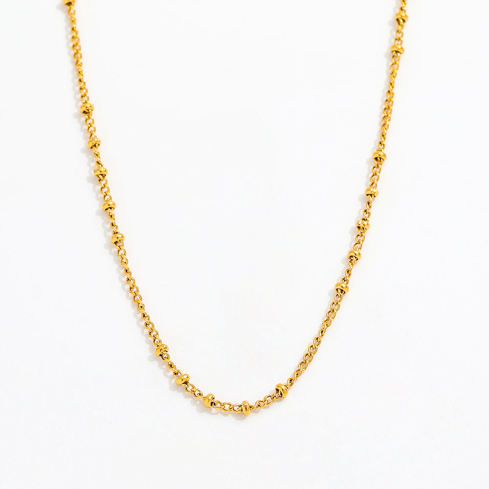 Fabricado en acero inoxidable 316L con baño en PVD dorado, este collar no solo resalta por su brillo intenso, sino también por su resistencia al agua, durabilidad y propiedades hipoalergénicas. Es la joya ideal para mujeres que buscan piezas versátiles y modernas, capaces de acompañarlas tanto en el día a día como en ocasiones especiales.