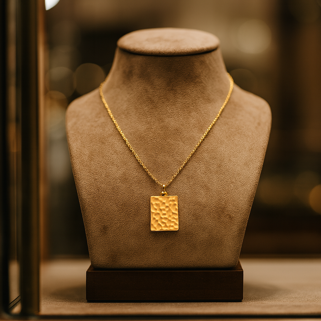 El Collar Elina combina una cadena fina dorada con un dije circular brillante que refleja la luz de manera sutil. Su diseño minimalista y atemporal lo convierte en un accesorio perfecto para llevar en cualquier ocasión, ya sea como protagonista o en combinación con otras piezas.