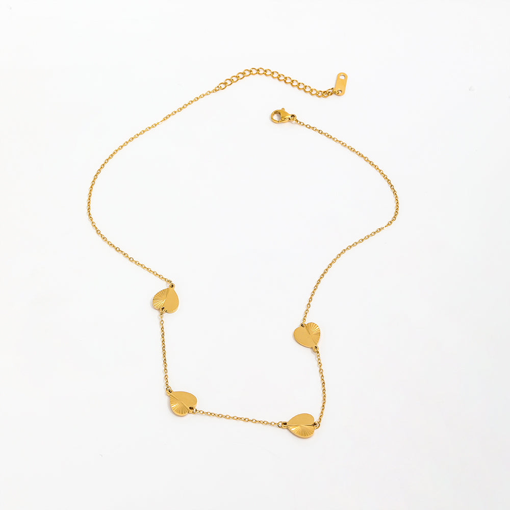 El Collar Gracia destaca por su diseño minimalista con dijes circulares en acabado dorado brillante, aportando un toque moderno y sofisticado. Una joya versátil que realza cualquier look con sencillez y estilo.