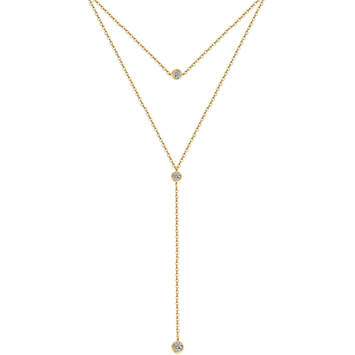 El Collar Kiara es la definición de elegancia clásica con un toque moderno. Su diseño en forma de Y, con una delicada cadena que desciende hacia el escote, termina en un sutil detalle brillante que realza la silueta de forma refinada y femenina.
