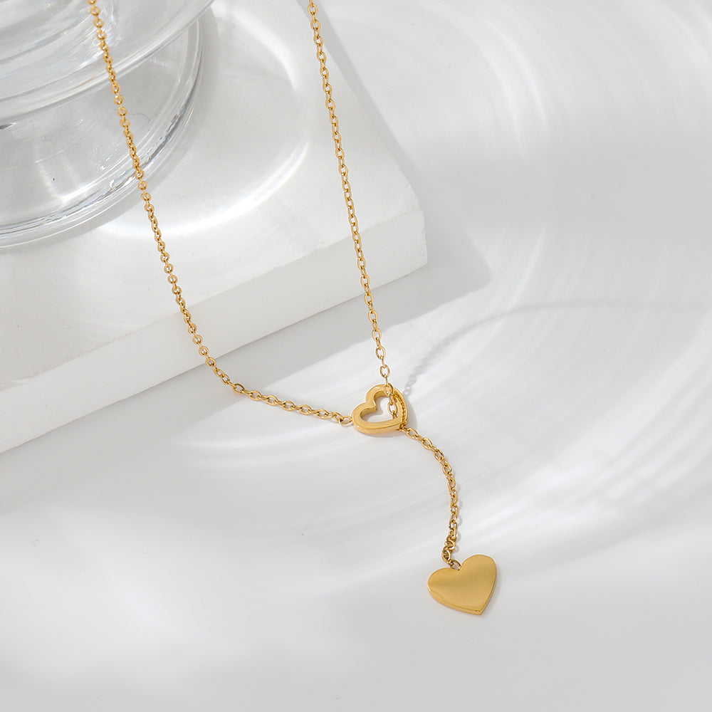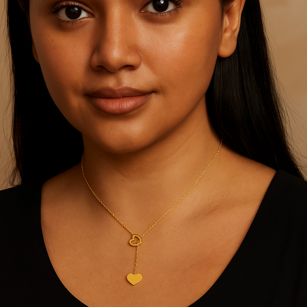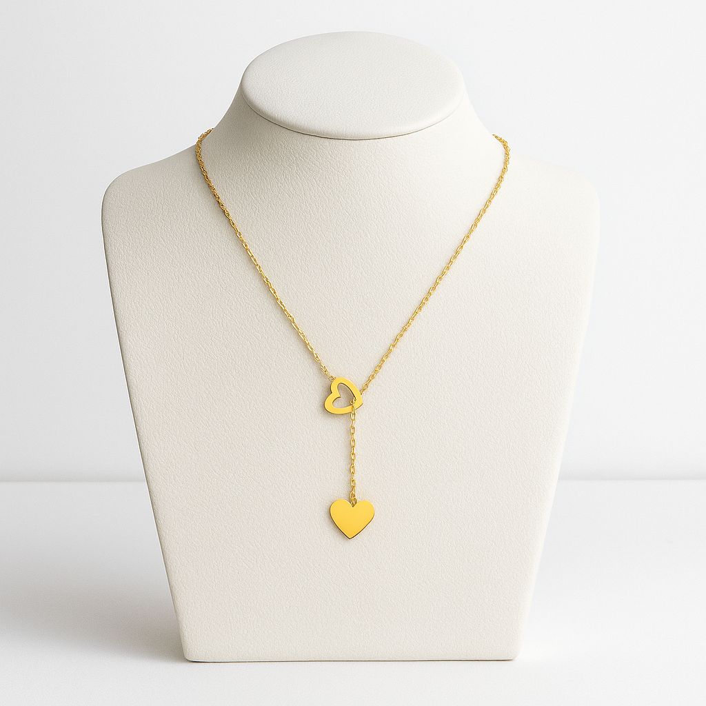 El Collar Maya es una joya romántica y elegante que simboliza amor y conexión. Su diseño tipo cadena en caída con dos corazones —uno calado y otro sólido— crea un efecto delicado y moderno, ideal para quienes buscan un accesorio versátil con un toque femenino.