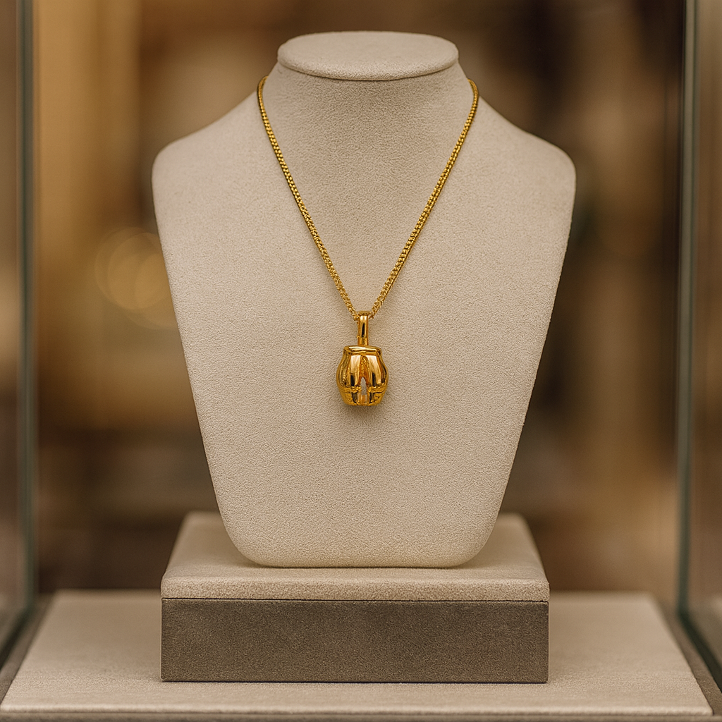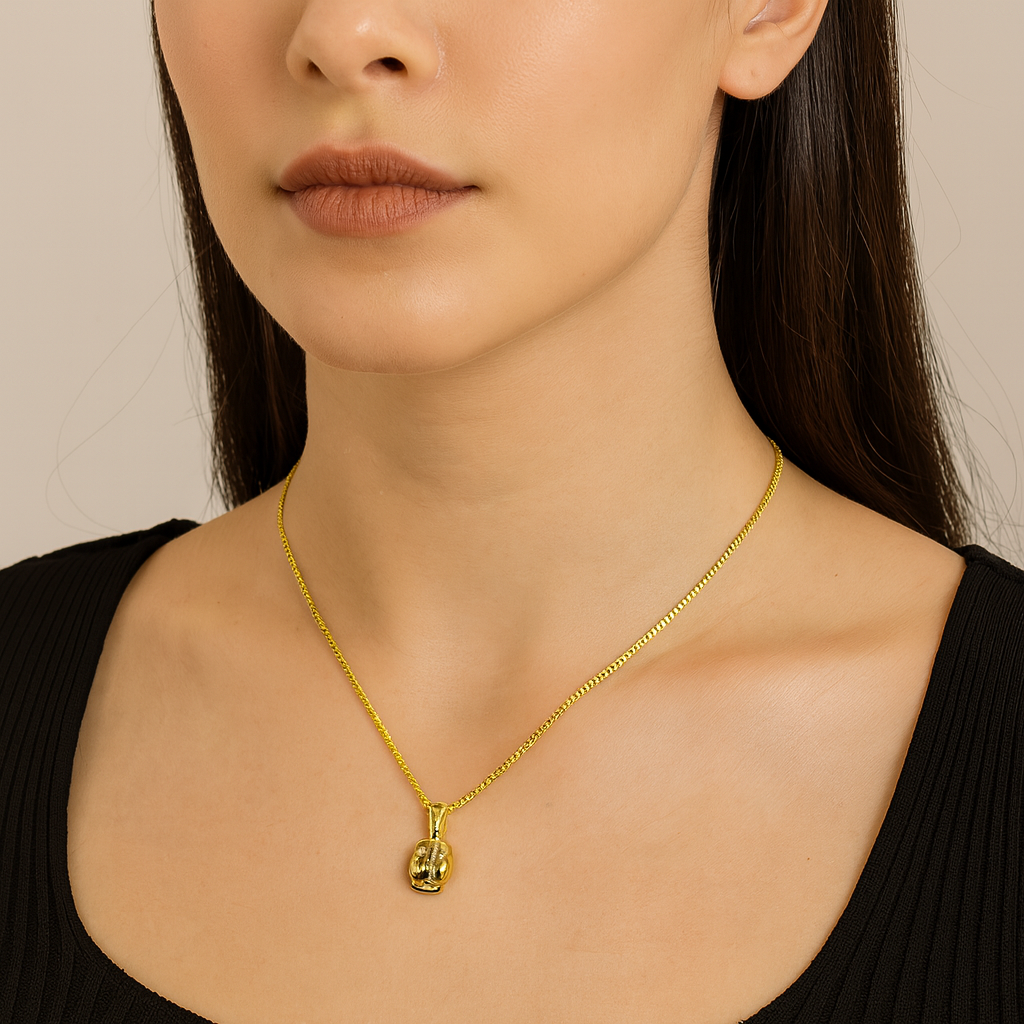 El Collar Mila es un accesorio artístico y atrevido que combina moda y escultura. Su dije en forma de torso femenino aporta fuerza, sensualidad y originalidad, mientras que la cadena dorada resistente garantiza un acabado elegante y moderno. Es la joya perfecta para quienes buscan destacar con estilo propio.