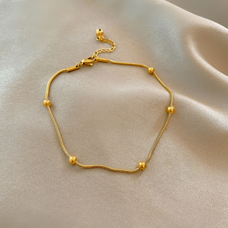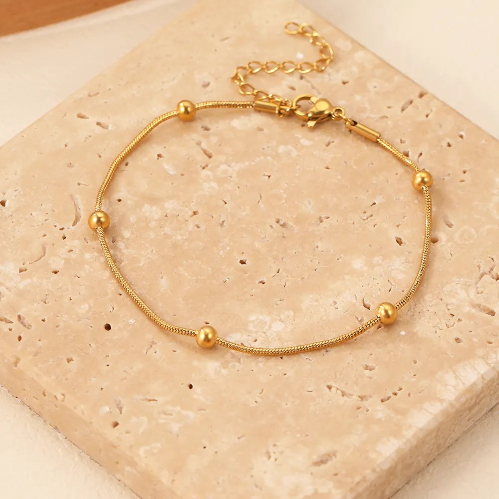 La Pulsera Alma es una joya que combina minimalismo, brillo y suavidad en un diseño moderno lleno de encanto. Sus esferas doradas pulidas crean una textura delicada y luminosa, perfecta para realzar tu estilo sin esfuerzo.