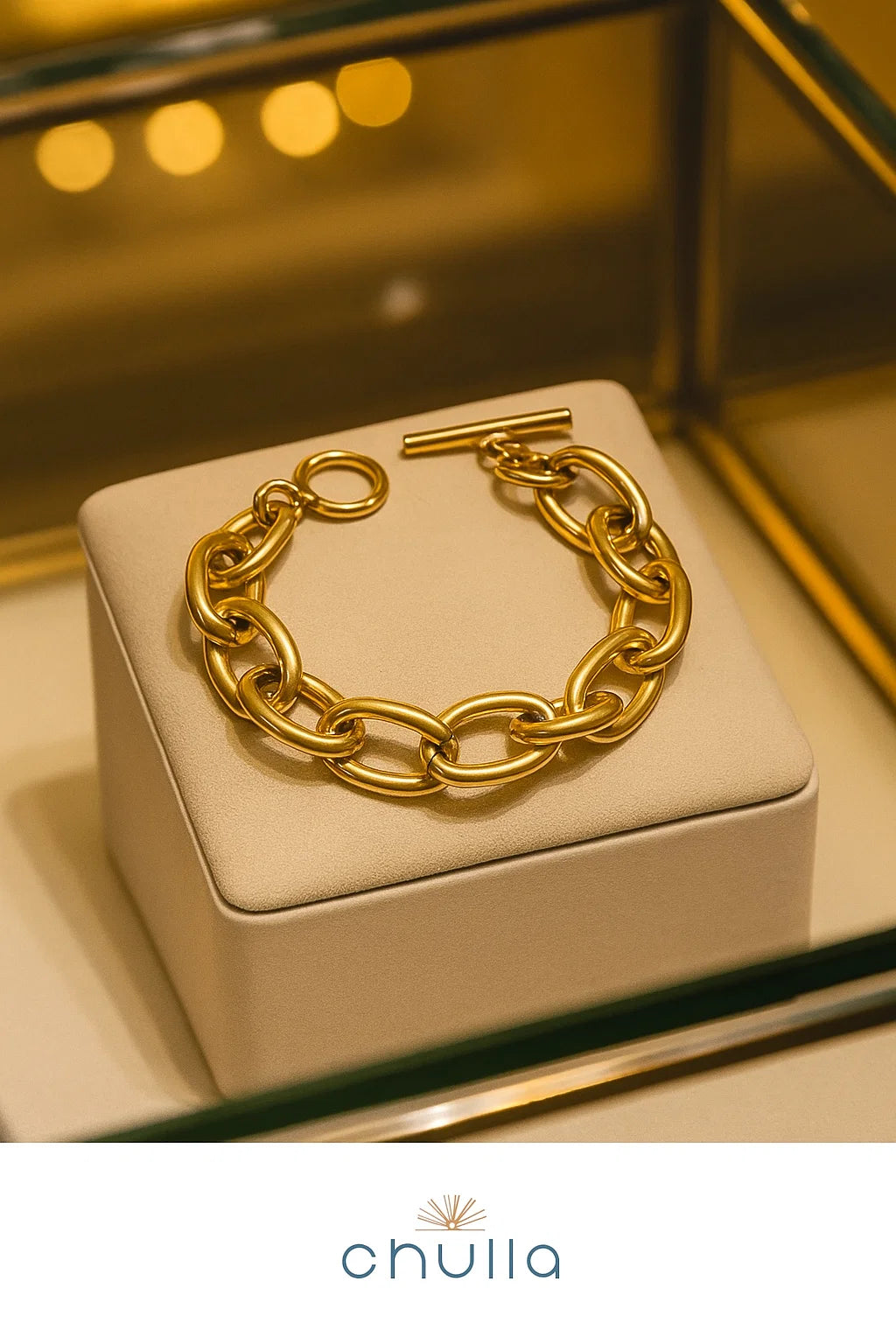 El collar Camille es una declaración de estilo que no pasa desapercibida. Con su cadena de eslabones gruesos y ovalados, esta joya añade un toque audaz y sofisticado a cualquier atuendo.