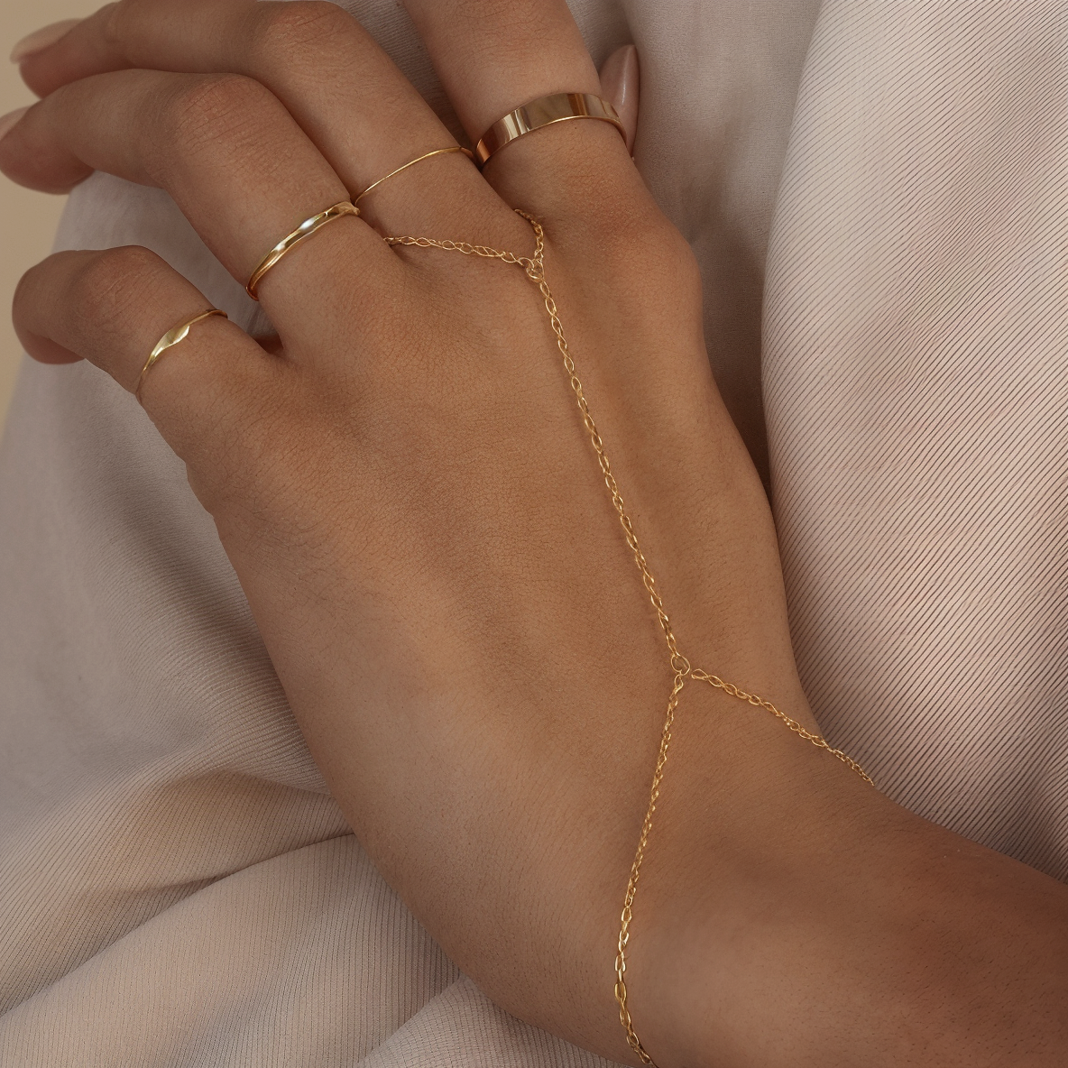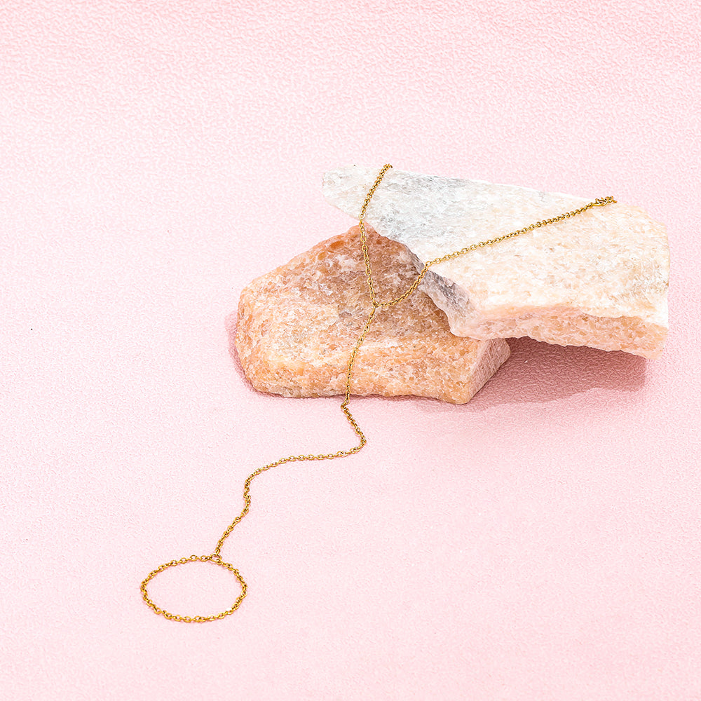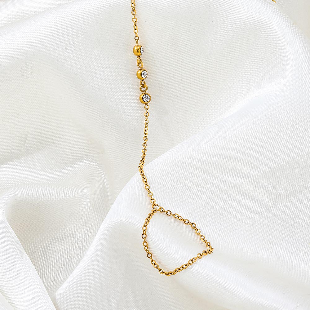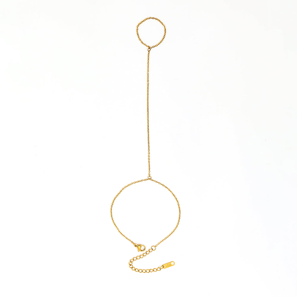 La Pulsera Ursula es una joya delicada y sofisticada que envuelve la mano con un diseño tipo esclava conectada, realzando la feminidad en cada detalle. Su forma estilizada y brillante acabado dorado la convierten en la pieza ideal para ocasiones especiales o para elevar un look cotidiano con un toque chic.